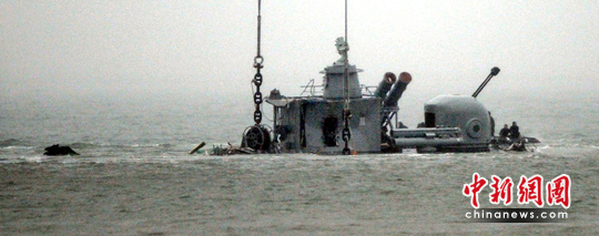 天安舰舰尾"浮出水面" 或今天可以打捞上岸