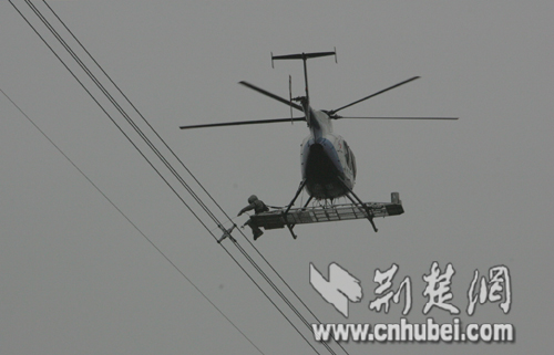 中国首次实现500千伏实际运行线路直升机带电作业。