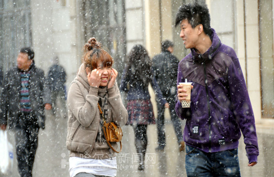 4月12日中午开始,黑龙江哈尔滨突降大雪,目前风雪仍在持续。黑龙江省12日发布的暴雪蓝色预警和道路结冰黄色预警称,哈尔滨、佳木斯等地局部有大到暴雪。