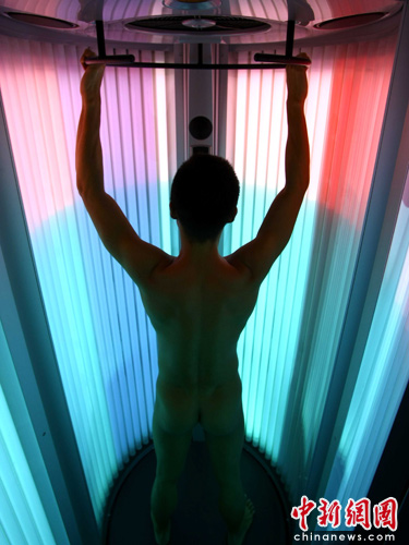 沙龙的魏经理向记者介绍,日晒初期每周晒二到三次,达到理想的古铜色后,就可以一周晒一次。中新社发 富田 摄