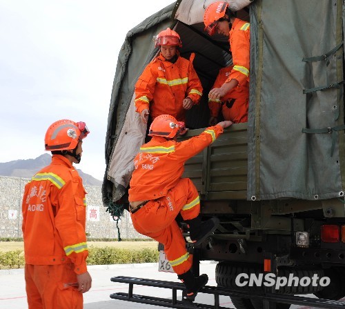14日下午17时50分,西藏消防总队(同时也是西藏自治区地震灾害紧急救援总队)再次派出直属特勤大队30名官兵、3辆救援跨区域远距离增援玉树地震灾区。