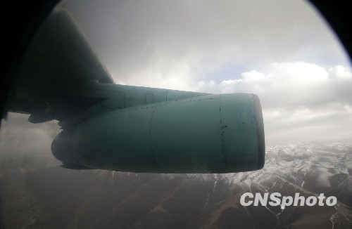运输机飞越雪山,挺进灾区。中新社发 刘应华 李欧 摄