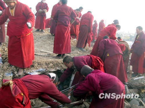 2010年4月15日,青海玉树进入震后第2天,国务院副总理回良玉看望、慰问震区灾民和现场搜救人员。全国各地多支救援力量集结玉树,灾区的搜索救援工作已全面展开。中新社发 孙自法 摄