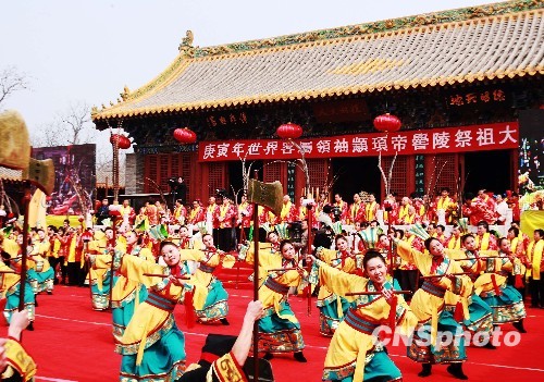 河南内黄,公祭大典正在进行歌舞告祭。中新社发 王中举 摄