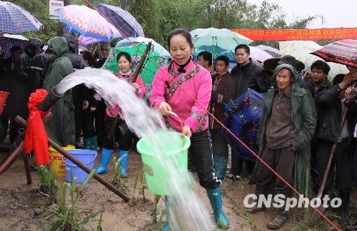 4月15日,罗城县燕塘片提水工程出水,可解决两个乡镇17个自然屯4600多人的饮水困难问题和2500多亩农田的灌溉用水问题。