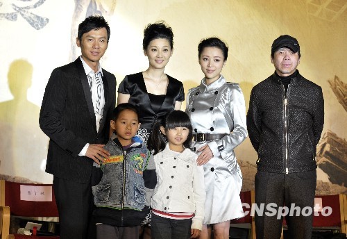图为导演冯小刚,演员徐帆、李晨、张静初和小演员张子枫、张嘉俊合影。中新社发 李学仕 摄