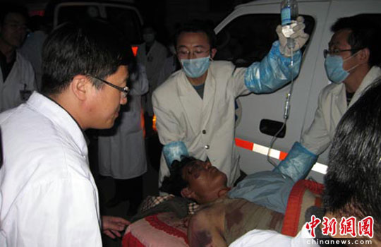 兰州大学第二医院医护人员急救青海玉树地震中受伤者。中新网发 侯志雄 摄