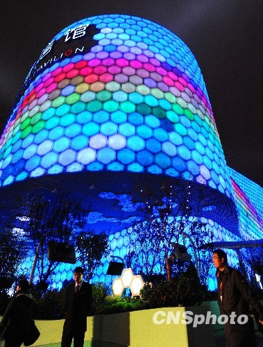 上海世博会浦西园区信息通信馆夜景。中新社发 远舟 摄