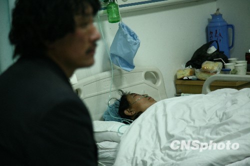 4月15日下午,青海玉树地震首批36名伤员随机抵达成都后立即被送往医院进行救治,目前,部分伤员已经完成基础手术,所有伤员伤势已经检查完毕,目前情绪比较稳定。百余名在成都生活的藏族志愿者也赶到医院当起翻译兼护理人员。中新社发 张浪 摄