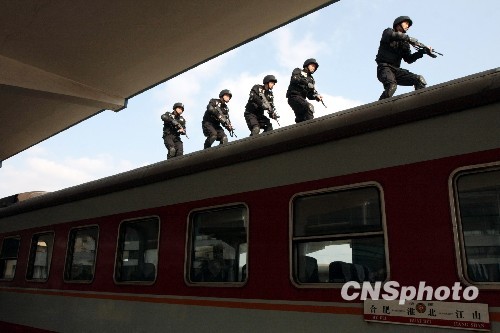 4月15日,安徽省淮北市公安特警支队组织民警在淮北火车站开展了铁路反劫持和排爆等“处突”演练,进一步威慑铁路系统不法分子,积极为上海世博会的召开营造良好的外围环境。