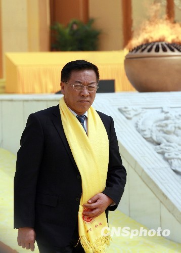 中华全国归国华侨联合会主席林军出席拜祖大典,并向黄帝敬献花篮。中新社发 王中举 摄