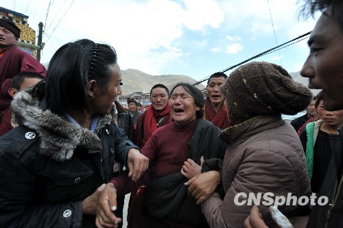 被救出后,才珍拉姆的奶奶、母亲喜极而涕,不停地感谢政府和救援人员们。中新社发 章轲 摄