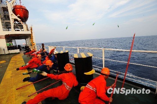 当地时间4月16日下午,中国海军第五批护航编队圆满完成第188批护航任务。针对近期亚丁湾、索马里海域海盗活动猖獗,护航编队在采取伴随护航的同时,为干舷低、航速慢的中国商船实施随船护卫,以确保被护船舶的安全。此次护航中,4名海军特战队员被派往中国籍散货船“嘉永山”轮实施随船护卫。期间,特战队员与“嘉永山”轮船员一起开展了联合反海盗演练。