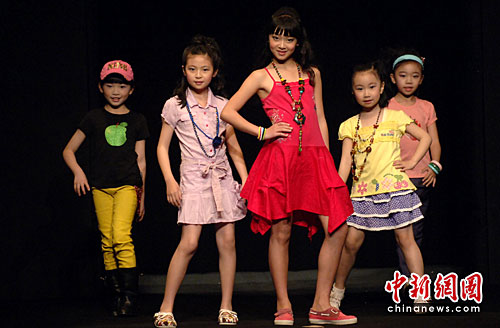 图为小模特T台上展示最新春夏童装。王东明 摄