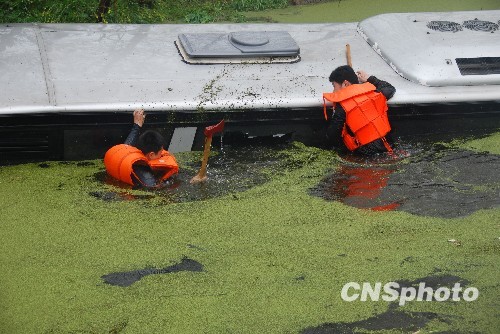 4月19日上午10时许,扬州市宁通高速蒋王收费站西,一辆江苏南通开往安徽颖上的大客车在雨中行驶中时,撞断护栏后冲下河,车上20多名乘客死里逃生。事故发生后,当地公安、消防、卫生等部门人员第一时间赶至现场展开救援。据了解,事故造成20多名乘客不同程度受伤。