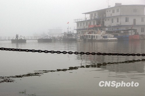 鄱阳湖遭浓雾袭击被迫停航。中新社发 张俊 摄