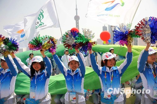 图为17日上午,“世界•我们——中国2010年上海世博会志愿者上岗宣誓仪式”在上海外滩亲水平台举行。中新社发 远舟 摄