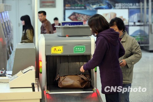 4月20日,上海世博会举行首场试运行。警方加强轨交安保巡查防线,升级地铁安检,做到逢包必查。中新社发 汤彦俊 摄
