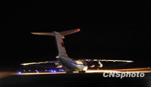 22时03分,飞机在夜幕中滑向跑道,准备连夜起飞。中新社发 刘应华 摄