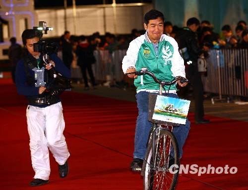 环保演唱会 众明星上演“自行车红毯秀”(3)