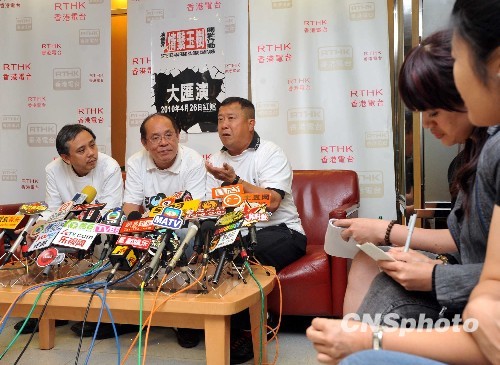 图为曾志伟、陈嘉上等演艺界代表接受众多媒体访问。中新社发 邓庆乐 摄