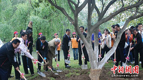 当天中国—东盟青年共同植下友谊树。中新社发 周利朔 摄