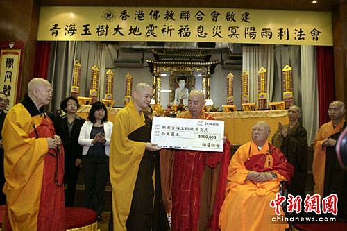4月24日,香港佛教联合会为青海玉树地震受灾灾民举行“青海玉树大地震祈福息灾冥阳两利法会”,法会由香港佛教联合会会长觉光法师亲临主法,全港各佛教团体代表出席。觉光法师再次呼吁全港佛教徒慨捐善款,为灾民伸出一双援手。