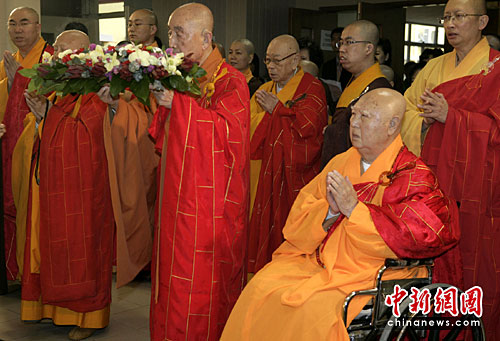 图为觉光法师等向亡灵献香、献花致悼。中新社发 张勤 摄
