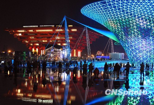 图:上海世博园亮灯流光溢彩(2)