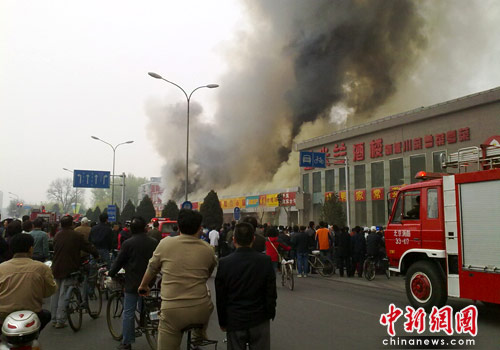 25日上午,北京市东城区和平里西街69号的金麦家刀削面馆发生爆燃,事故发生后,附近网吧、照相馆和市场等9家商铺受殃及起火,商户及地坛北里的数百名居民被紧急疏散。中新网记者 顾少华 摄