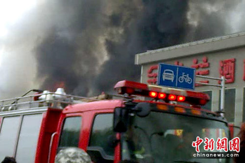 25日上午,北京市东城区和平里西街69号的金麦家刀削面馆发生爆燃,事故发生后,附近网吧、照相馆和市场等9家商铺受殃及起火,商户及地坛北里的数百名居民被紧急疏散。中新网记者 顾少华 摄