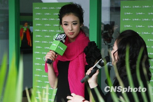 深陷“兽兽门”事件的翟凌,4月26日以某网站主持嘉宾的身份现身2010年北京国际车展。中新社发 宋海涛 摄