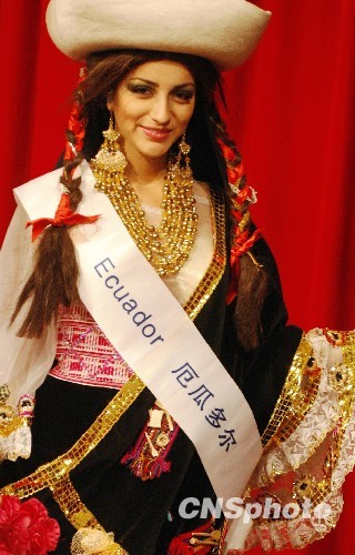 图为2010年全球小姐各国参赛佳丽展示风格各异的国服。中新社发 钱兴强 摄