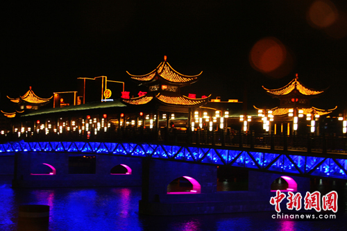 4月21日——4月26日,参加“诗画江南——全国知名网络媒体浙江行”的编辑们在浙江各地进行体验采访,了解浙江各地借上海世博会机遇,推进旅游业等经济发展情况。图为湖州项王公园夜景 摄影:位宇祥