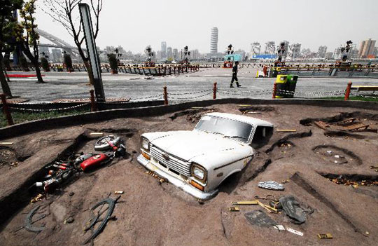 近日,雕塑《掘出来的梦》亮相世博公园。这件作品以“考古现场”的形式展现人们在不同时期使用的老物件,叙述上海这座城市“让生活更美好”的岁月历程,通过艺术手法诠释出世博会的主题。