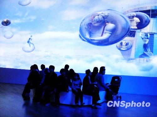 4月28日,步入上海世博会芬兰展馆,会感觉犹如走进一个带有流水岩石的庭院,展馆内墙视屏展现芬兰独特的美景、先进的环保技术及产品等。 中新社发 井韦 摄