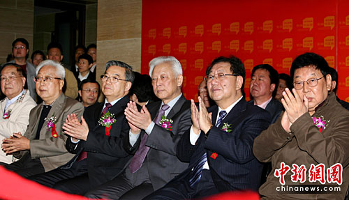 全国人大常委会副委员长周铁农(中),全国政协副主席、中国社会科学院院长陈奎元(右二),全国政协副主席李金华(左三),全国政协副主席郑万通(右),全国政协原副主席张思卿(左二)出席开幕式。中新社发 王保胜 摄