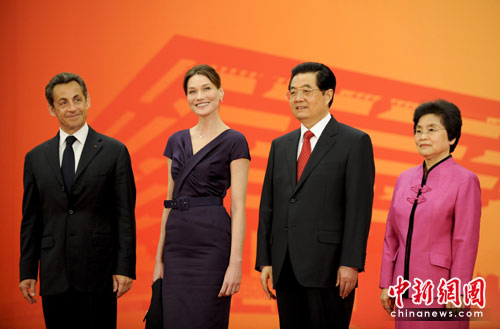 图:胡锦涛夫妇欢迎萨科奇夫妇(2)