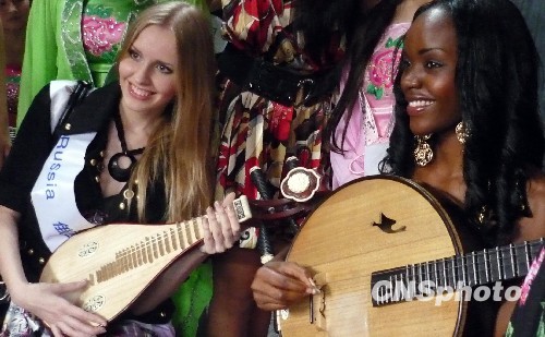图为各国佳丽演绎中国民族器乐。中新社发 钱兴强 摄
