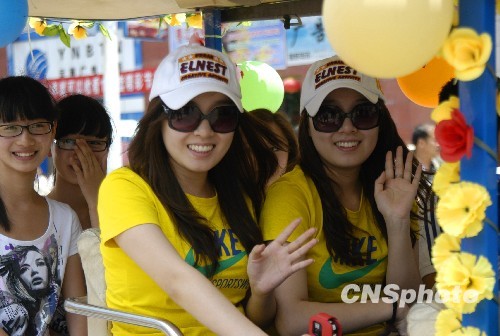 图为来自各地的双胞胎巡游。中新社发 田洪 摄