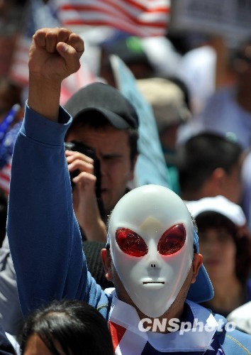洛杉矶爆发近年来最大规模移民游行(2)