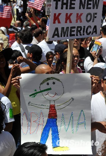 洛杉矶爆发近年来最大规模移民游行(3)