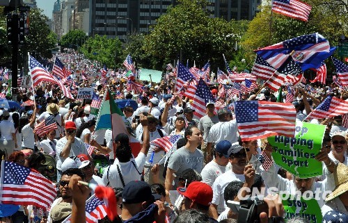 洛杉矶爆发近年来最大规模移民游行(7)