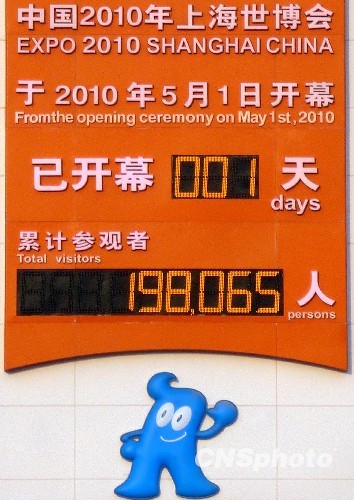 2010年5月1日,在北京中国国家博物馆前,上海世博会开幕倒计时牌悄然变身为显示开幕天数和累计参观人数的记录牌。