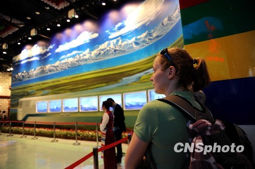 中外游客前往上海世博会的西藏馆中观看展览。中新社发 许康平 摄