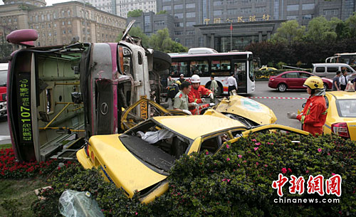 5月3日上午,重庆主城区发生一起公交车失控撞翻出租车事件,车牌号为渝A24638的107路公交车刹车突然失控后撞断路灯、冲过隔离带,逆向撞上牌号为渝BT3382的出租车,致出租车驾驶员当场死亡。
