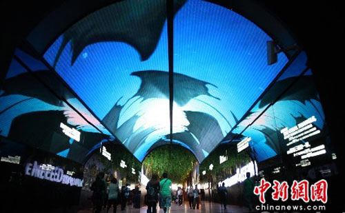5月4日,上海世博会印度尼西亚馆内的“海底世界”展示了丰富的印尼海洋生态,吸引众多游客好奇的目光。中新社发 汤彦俊 摄