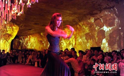 游客走进上海世博园西班牙国家展馆,便能欣赏到西班牙女郎演绎的运动激情。中新社发 陈文 摄