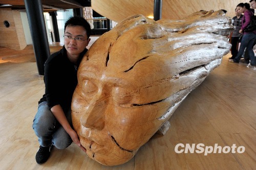 图为智利国家馆的木雕。中新社发 陈文 摄