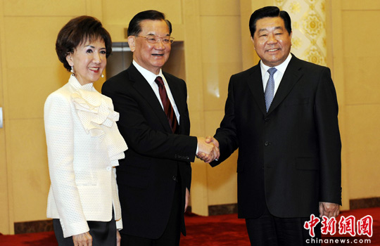 5月7日,中共中央政治局常委、全国政协主席贾庆林在北京人民大会堂会见了中国国民党荣誉主席连战和夫人一行。